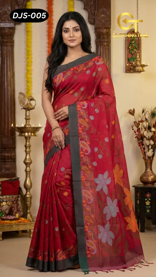 Premium Deep Jamdani Saree Now Available At ClothingTime.com – ঐতিহ্য, রাজকীয় নকশা ও আধুনিক এলিগেন্স 🌟