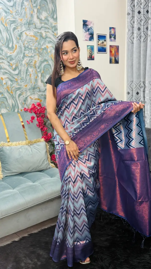 Premium Blended Silk Zigzag Woven Saree আপনার ওয়ারড্রোবে যোগ করবে আভিজাত্য, আরাম ও ট্রেন্ডের নিখুঁত সমন্বয়। যারা স্টাইলের সাথে গুণগত মানকে সমান গুরুত্ব দেন—এই শাড়ি তাদের জন্য একটি আদর্শ পছন্দ।