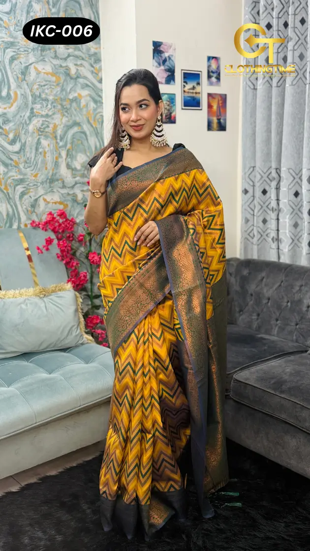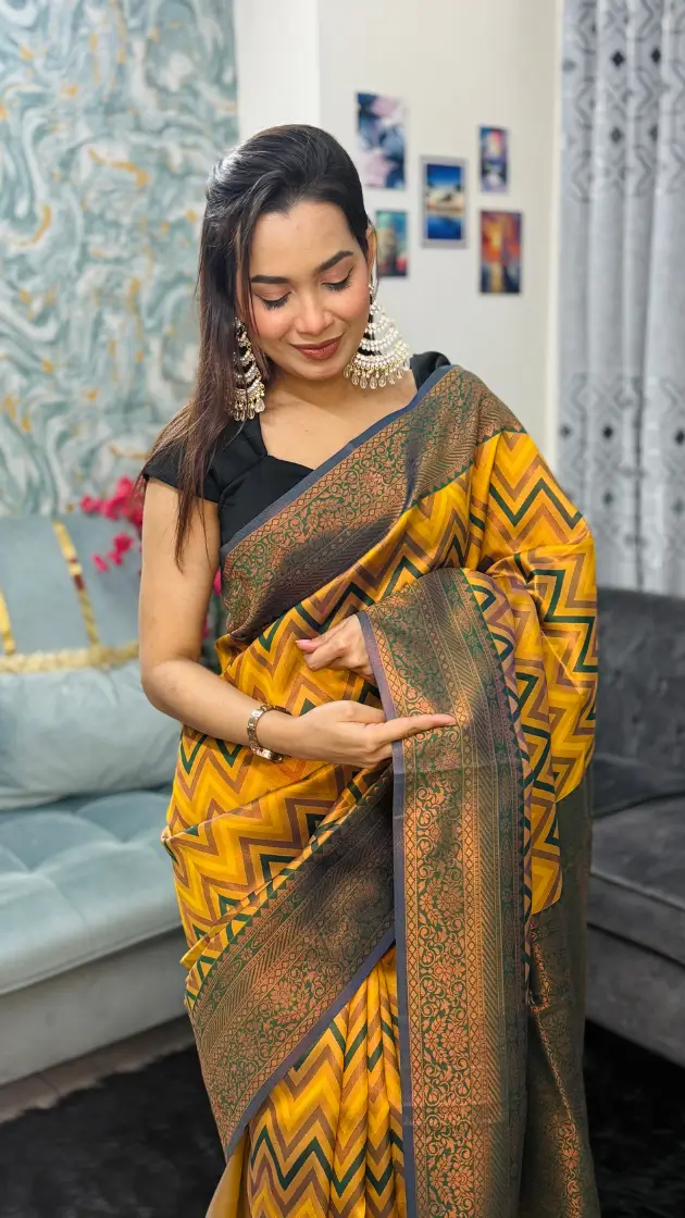 Premium Blended Silk Zigzag Woven Saree আপনার ওয়ারড্রোবে যোগ করবে আভিজাত্য, আরাম ও ট্রেন্ডের নিখুঁত সমন্বয়। যারা স্টাইলের সাথে গুণগত মানকে সমান গুরুত্ব দেন—এই শাড়ি তাদের জন্য একটি আদর্শ পছন্দ।